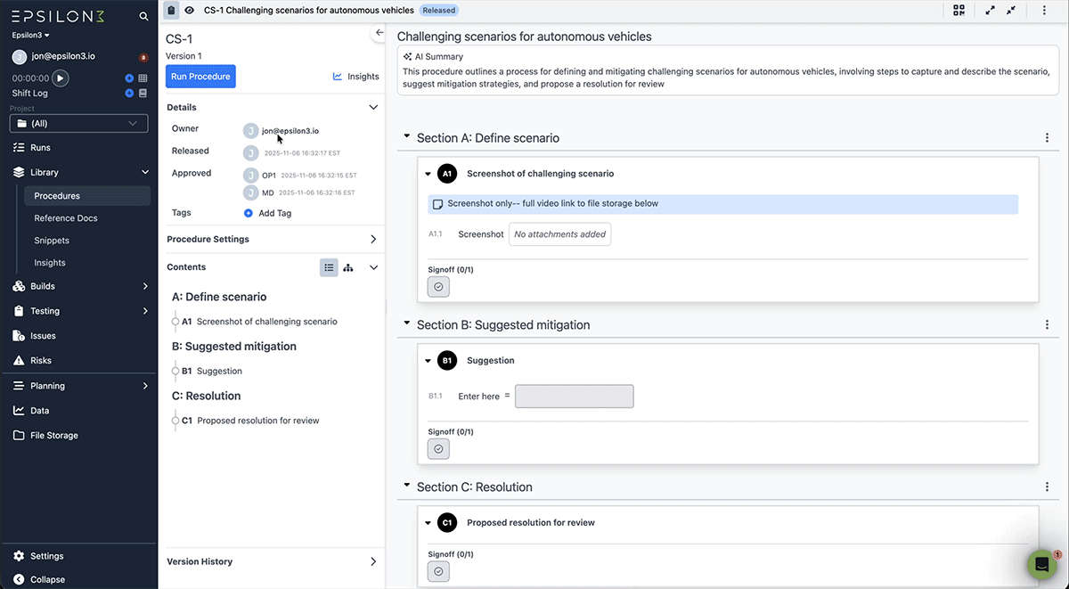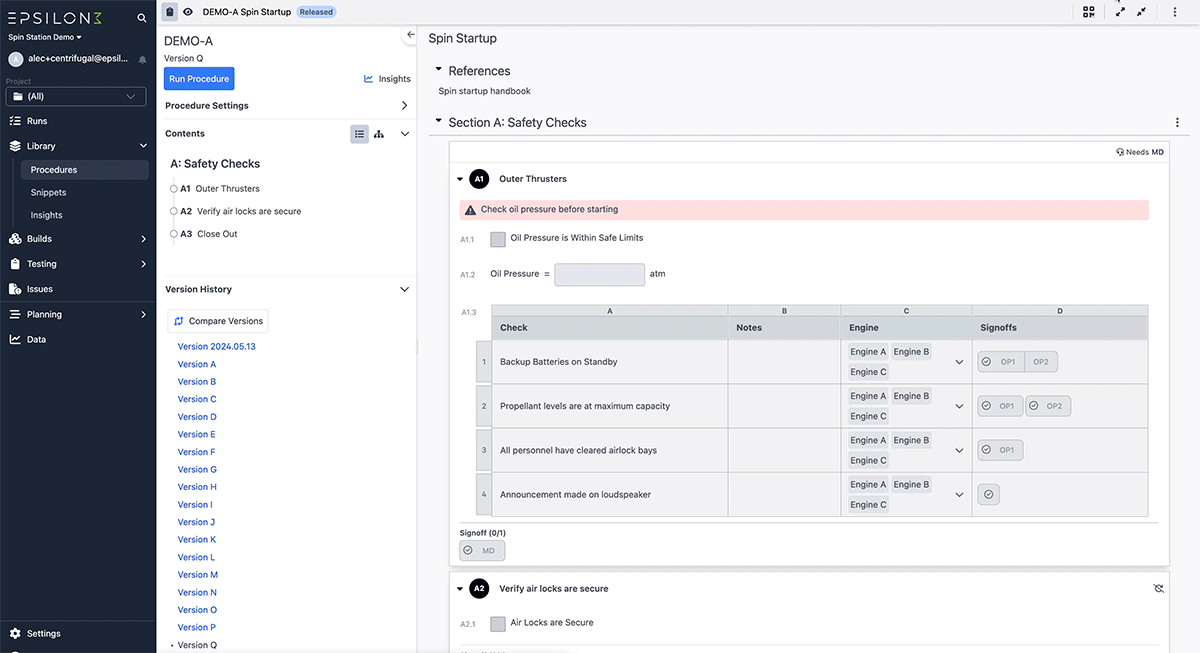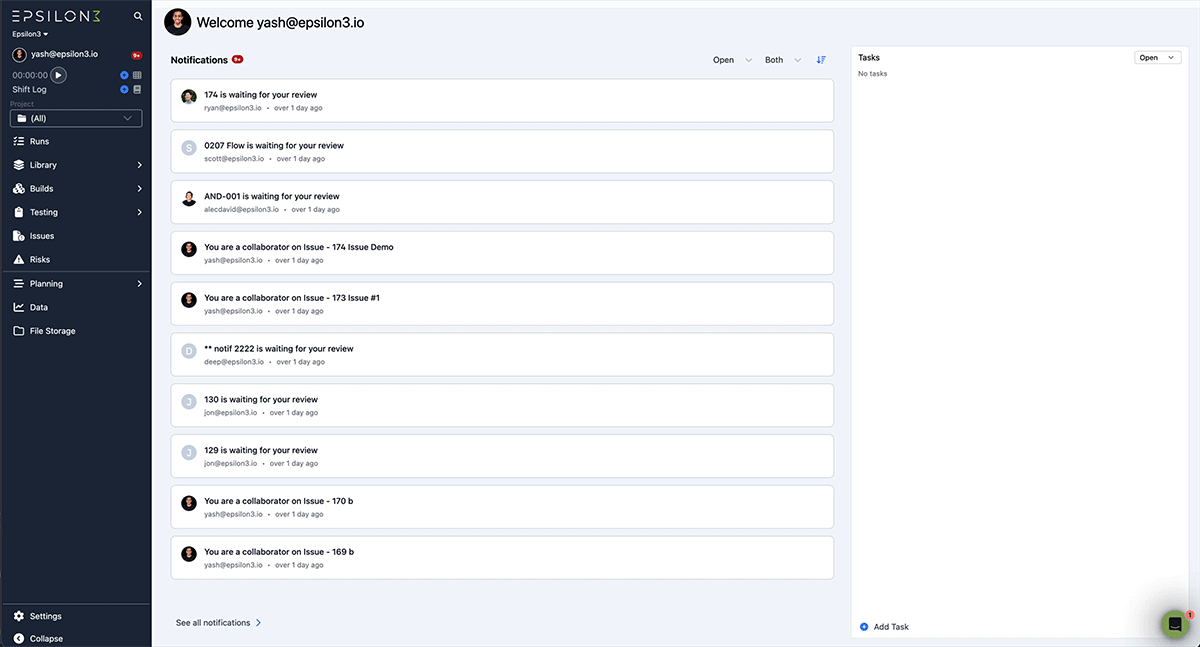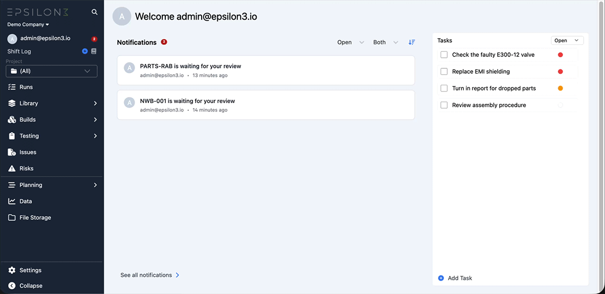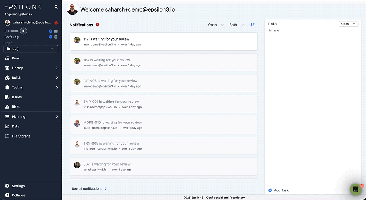 Epsilon3 Changelog #90 - In App Task Tracking, Compare Step Attachments Across Runs, Revert to Prior Procedure Version, Homepage Action Items, Centralized Locations Settings (November 2025)