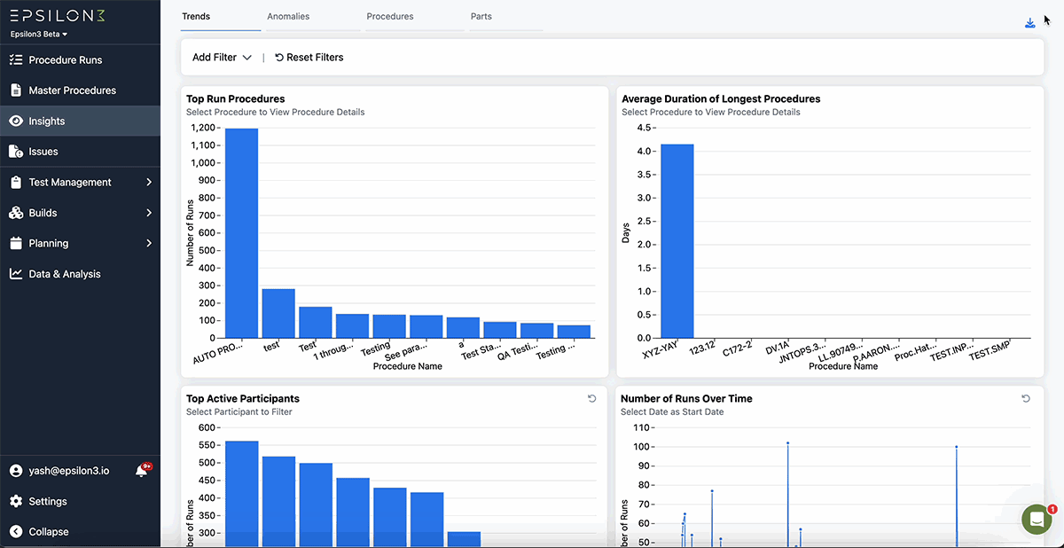 This streamlined feature enables you to effortlessly filter through procedures, pinpoint the specific run data you're analyzing, and seamlessly export it for your convenience.