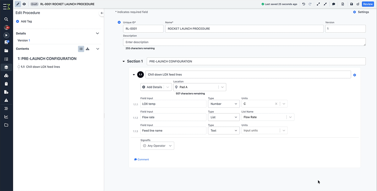Pre-populate your field inputs with default values to accelerate run execution and reduce operator errors.