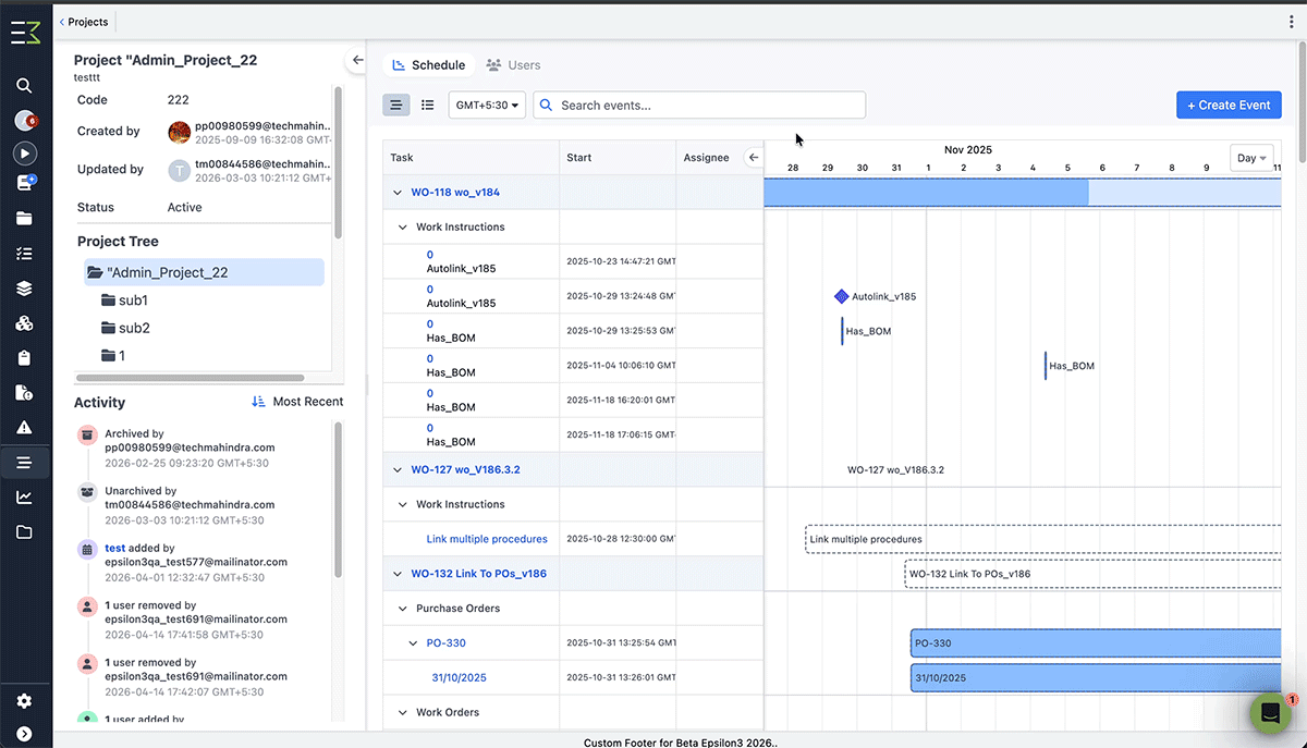 Project schedules continue to improve. You can now search, filter by date range, and create ad hoc events - including repeating schedules, milestones, and procedure-linked events. A full activity log now tracks every change across your projects and events.