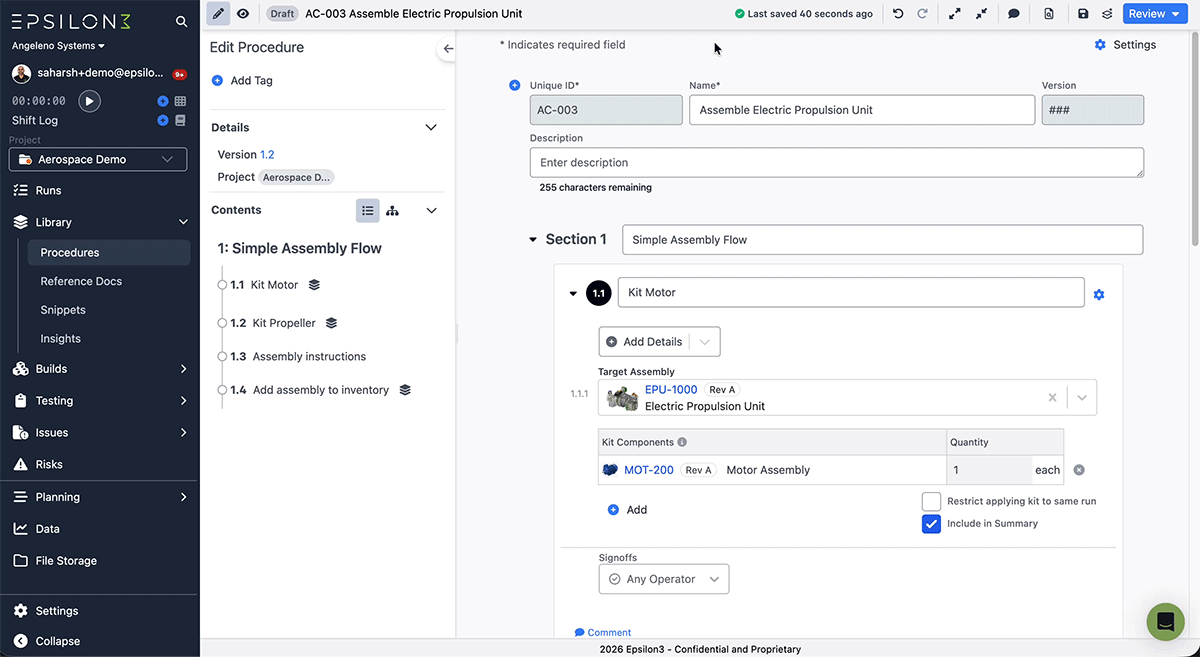 Users can now add the Bill of Materials (BOM) for a part in the procedure header or any content block.