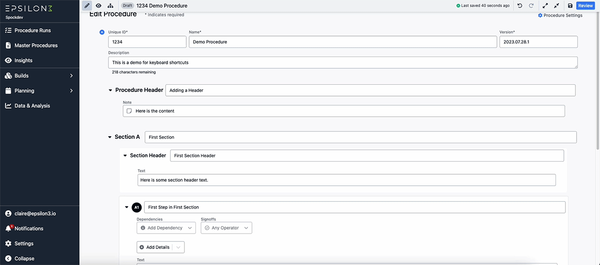 Who doesn’t love keyboard shortcuts? Now you can quickly find the necessary shortcut to increase your efficiency when editing procedures.