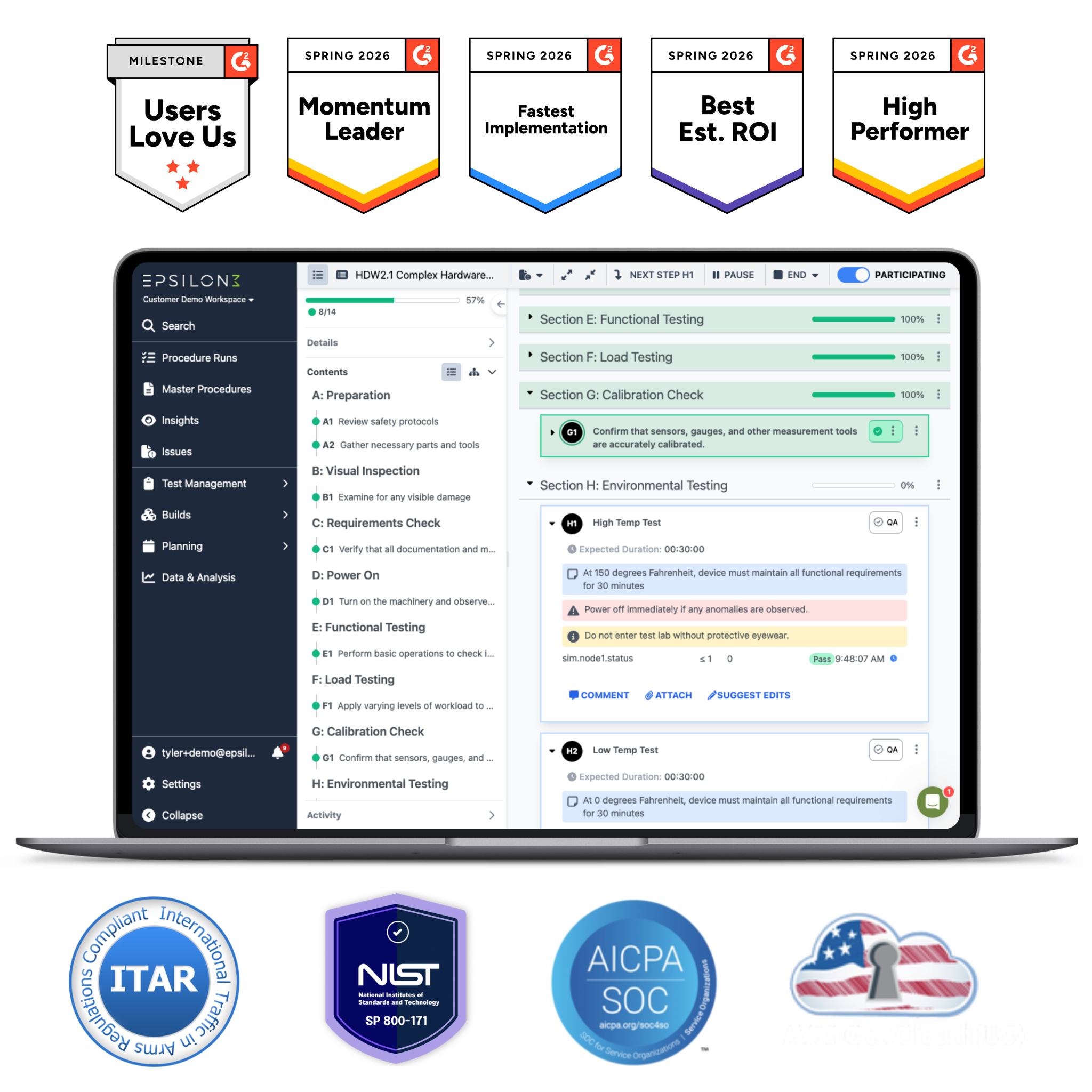 “Epsilon3 has transformed our operations by enabling efficient procedure management and real-time collaboration. It's the ideal tool for scaling our test environment.”